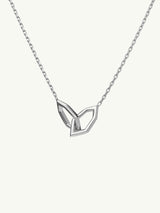 The Amanti Necklace showcases two interlocking geometric hexagon pendants—an ancient sacred symbol representing spiritual consciousness, harmony, and the balance of masculine and feminine energy—meticulously handcrafted in luminous 18-karat white gold.