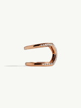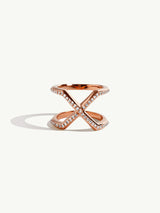 The Exquis Pavé-Set Brilliant White Diamond Infinity Ring by Angie Marei features an architectural cross-over infinity design that symbolizes eternal love and power. Exquisitely handcrafted in 18-karat rose gold and pave-set brilliant white diamonds that sparkle and reflect light from every angle.