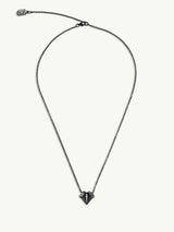 The Alexandria Pendant Necklace by Angie Marei features a gorgeous art deco-inspired pendant with pavé-set brilliant white diamonds on a gleaming round cable chain handcrafted in 18-karat blackened gold. In this piece, Marei takes inspiration from the Step Pyramid of Djoser of Ancient Egypt that ascended upwards from the ground towards the sky, symbolizing a stairway to heaven.