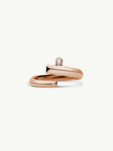 The Pythia Serpentine Coil Ring by Angie Marei features a beautiful sparkling brilliant-cut round white diamond set on a knife-edged ring handcrafted in solid 18-karat rose gold. Inspired by Ancient Egyptian serpent jewelry, this contemporary design resembles a coiled serpent – the ancient symbol of royalty, divine authority, rebirth, immortality, and transformation – that seductively wraps around the finger. A fusion of sculpture and jewelry that delicately captures the essence of femininity and whispers erotic.