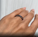 The Marei Beveled-Edge Pavé White Diamond Wedding Ring by Angie Marei features two rows of sparkling brilliant-cut round white diamonds pavé-set on a blackened 18-karat gold band. A beautifully handcrafted piece that gleams and sparkles in the light – and darkness.