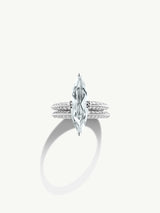 The Marei Diamond Halo Engagement Ring by jewelry designer Angie Marei, showcases a stunning brilliant-cut Marquise White Aquamarine jewel enthroned in an Art-Deco-inspired claw setting. Handcrafted from 18-karat white gold and pavé-set brilliant-cut round white diamonds, this gorgeous piece will dazzle and delight the senses with its hidden halo of sparkling white diamonds creating a sparkling effect around the centerpiece gemstone.