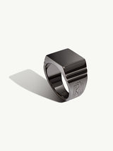 Elegantly designed and handcrafted, the Adrian Signet Ring by Angie Marei features a bold architectural silhouette with a deep-set linear design inspired by the Ancient Pyramids of Egypt. Cast in solid sterling silver polished to perfection and finished in a deep gunmetal-colored blackened finish.