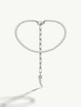 A daring take on the classic pearl necklace, the Damian Horn Talisman Pearl Necklace by Angie Marei is luxuriously handcrafted from 18-karat white gold and pavé-set brilliant-cut white diamonds. The powerful sculptural design was inspired by amulets and talismans worn by the ancient Egyptians.