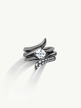 The ancient Egyptian-inspired bridal set of three stackable rings has been thoughtfully designed and created to resemble an elegant twisting serpent, the ancient symbol of immortality. When observed from the side, revealing a silhouette of a flower in bloom - a fusion of sculpture and jewelry that delicately captures the essence of femininity whispers erotic.