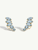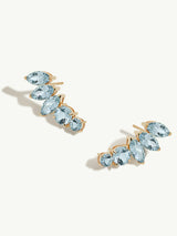 The Isadora Earrings by Angie Marei feature brilliant-cut round and marquise-shaped blue Aquamarine gemstones in luxurious 18-karat yellow gold prong settings. These versatile earrings can be worn in two ways.