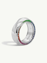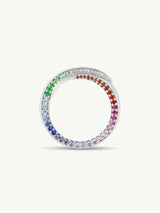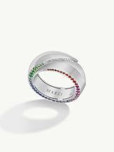 Sahara Oasis Ring With Pavé-Set Brilliant-Cut Diamonds and Rainbow Ombré Sapphires In 18K White Gold, 8mm