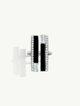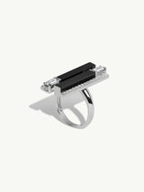 The Invidia Black Onyx Column Diamond Ring by Angie Marei is masterfully handcrafted in opulent 18-karat white gold. This sculptural piece features striking columns of hand-carved and polished black onyx, flanked by step-cut baguette white diamonds and pavé-set brilliant-cut round white diamonds. Sleek, structured, and architecturally bold, this design draws inspiration from the refined elegance of the Art Deco era and the rich visual language of Ancient Egyptian art.