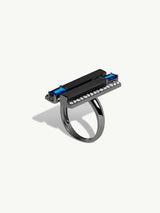 Invidia Black Onyx Column Ring With Baguette-Cut Blue Sapphires & Pavé-Set White Diamonds Ring In 18K Blackened Gold