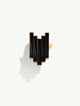 The Invidia Black Onyx Column Ring by New York jewelry designer Angie Marei. Exquisitely hand-crafted in 18-karat yellow gold and polished black onyx gemstones. This beautiful architectural ring combines the opulence and glamour of the Art Deco era with the marvelous jewels of the Ancient Egyptian royals.