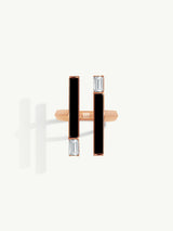 The Invidia Black Onyx Column Ring is a bold yet elegant statement piece, meticulously handcrafted in luminous 18-karat rose gold. At its center, a sleek column of polished black onyx is framed by perfectly aligned straight baguette-cut white diamonds, creating a striking architectural silhouette. The linear precision of the diamonds evokes the geometric sophistication of the Art Deco era, while the opulent gold and onyx combination channels the divine grandeur of Ancient Egyptian royalty.