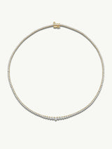 The Eternal by Marei Graduated Diamond Necklace by Angie Marei showcases a mesmerizing 6.625-carat brilliant-cut round white diamond, elegantly cradled in a classic four-prong setting on a 16-inch chain. Each diamond is meticulously hand-selected for its exceptional fire, brilliance, and clarity, ensuring a breathtaking display of light with every movement. A masterpiece of sophistication and timeless elegance, this necklace is a modern heirloom, destined to be treasured for generations.
